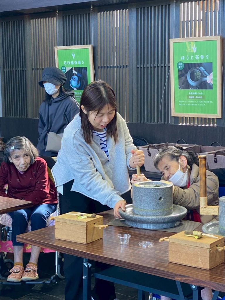 翌日は茶の文化村で抹茶碾きやほうじ茶作りなどを体験し、八女の特産を知る良い機会となりました。