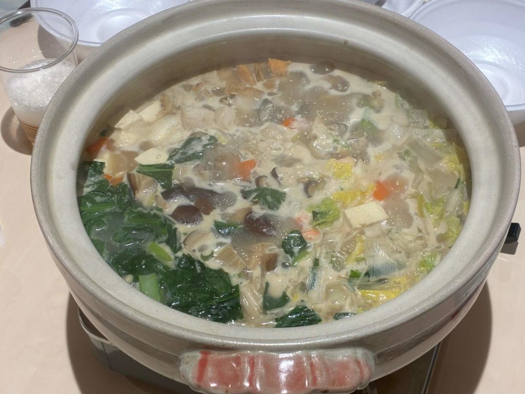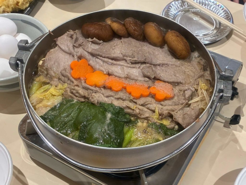 メニューはすき焼きと海鮮鍋という豪華な食事に皆さん舌鼓を打ち、イベントとしてカラオケも行い大いに盛り上がりました。